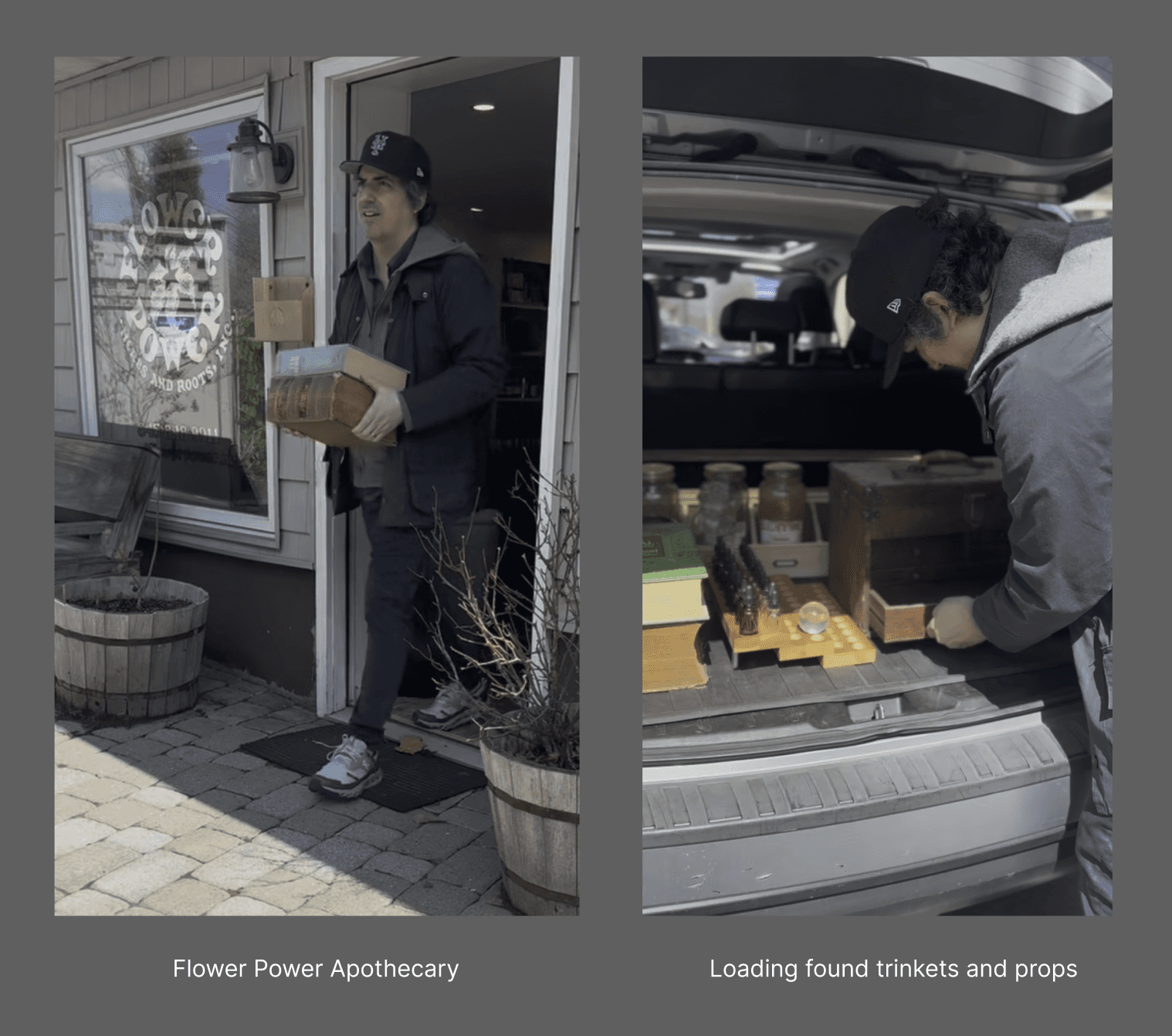 Gathered materials from my supporting partner Flower Power, the oldest Apothecary in New York City. I went up to their Piermont location to find props to incorporate into the experience. The owner, Lata, was extremely generous, and I collected lots of great artifacts. The adventure continues after the MAIA Experience this summer in the Lower East Side.
