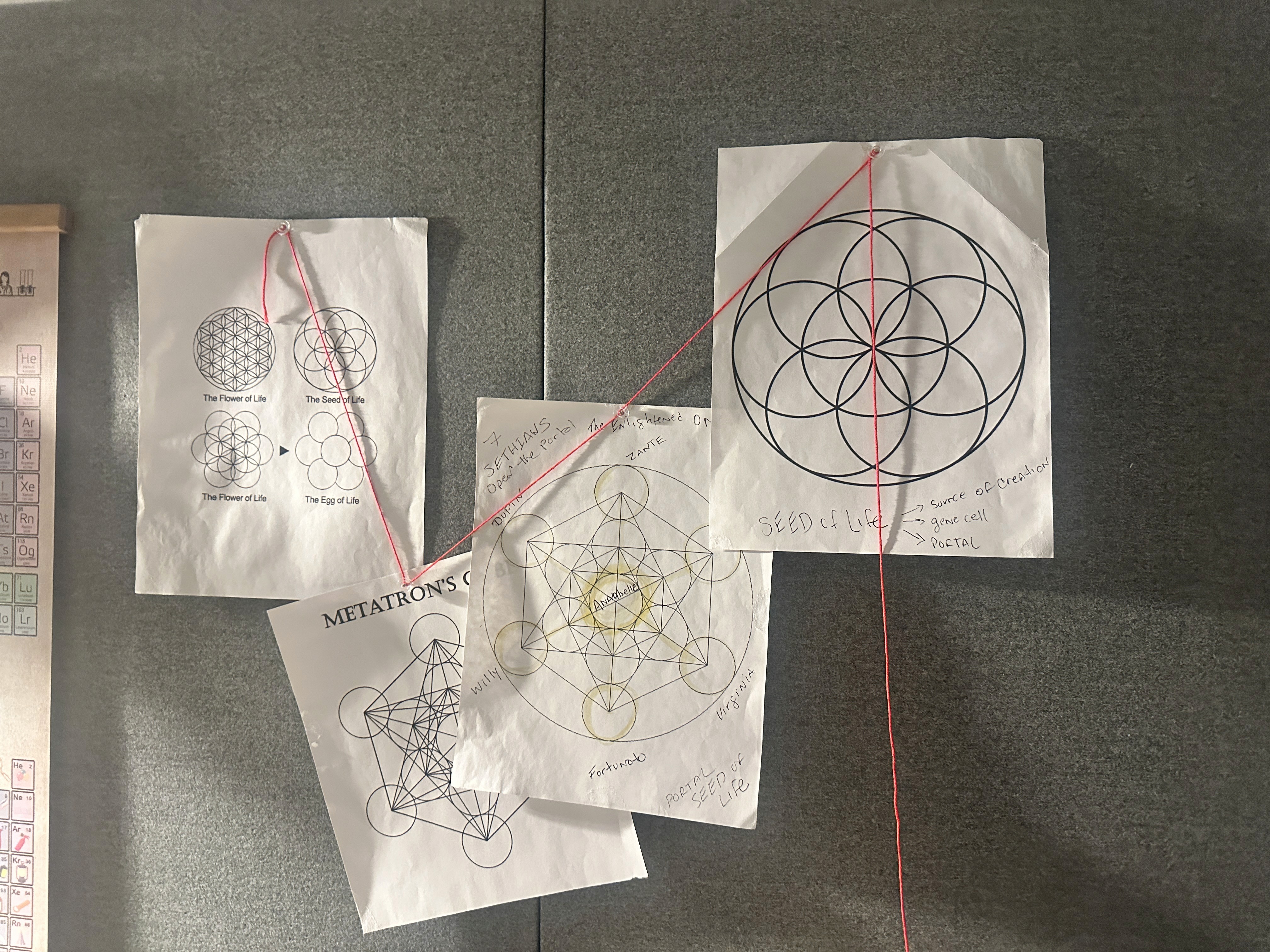 With many elements in place I started to setup computer vision, lighting, and audio. ![]() | What did the professor discover and evidence of how he did it? He unlocks the way with a Metatron Cube. ![]() | Professor Dupin has a red string trail trying to put the pieces together. An old trope, but it works given the short time someone is in the space. ![]() |