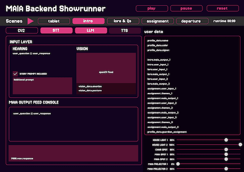 This week I worked on prototypes for MAIA and coded an initial verison of a frontend and backend application that launches the experience. There is lots of aspects to figure out and build.
