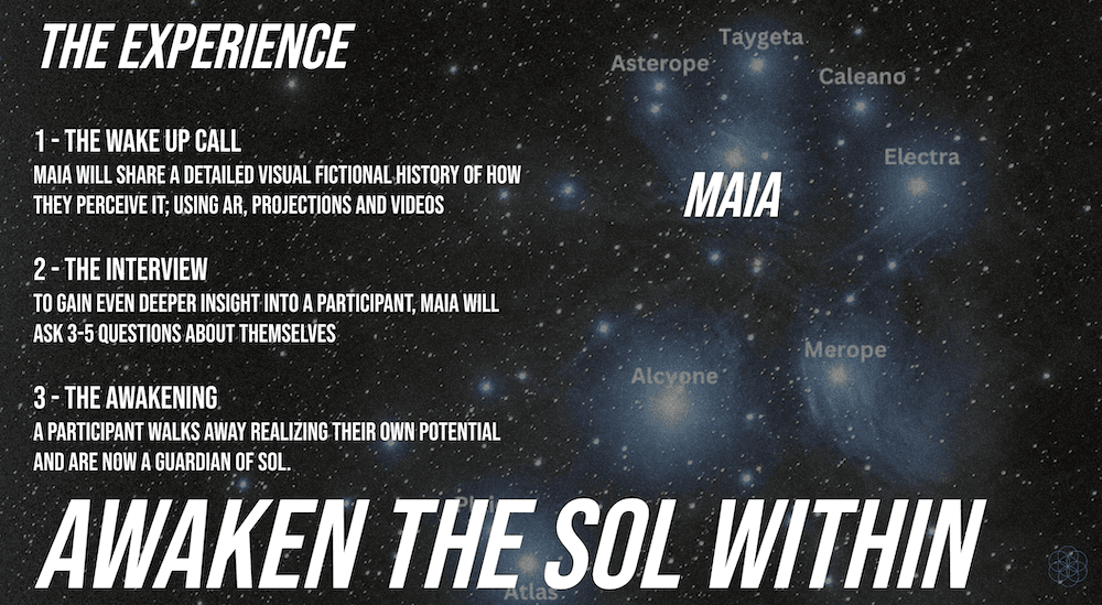 This week I spend some time on thinking about the story or experience that I want someone to have during the experience and how people feel after. The major word to takeaway is "Awakening". It is my task to have maya Awaken the potential in the person interacting with MAIA.