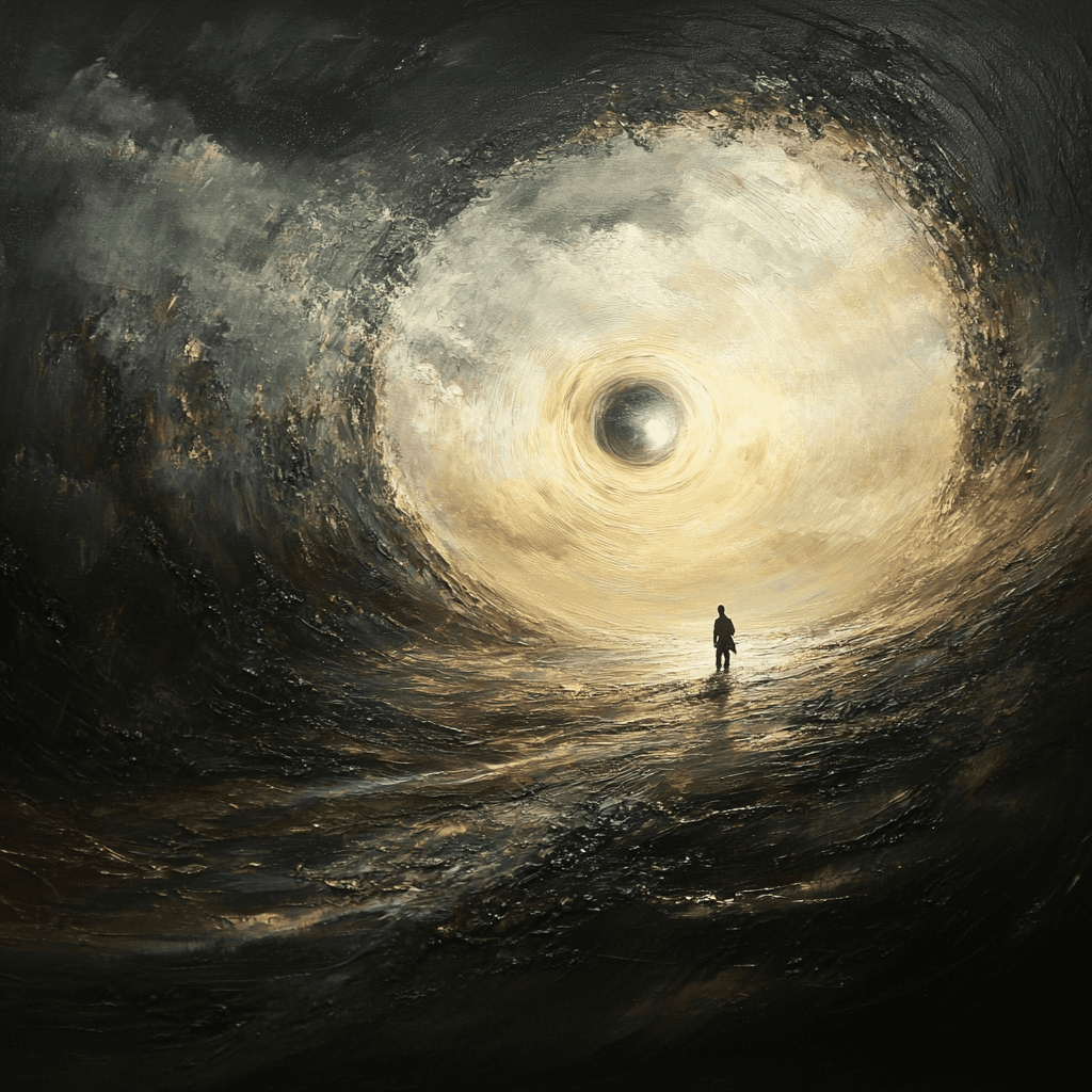 When I entered it was dark but I felt myself moving through space and time. I arrived at what I might describe as a grid of digital knowledge running beneath my feet and up the walls. It seemed to go on forever. There was a solitary chair that pulsed with energy. I sat down and a large sphere of light descended from the eternal sky. The sphere came to place itself right in front of me, and that is when it uttered in the most calming voice,